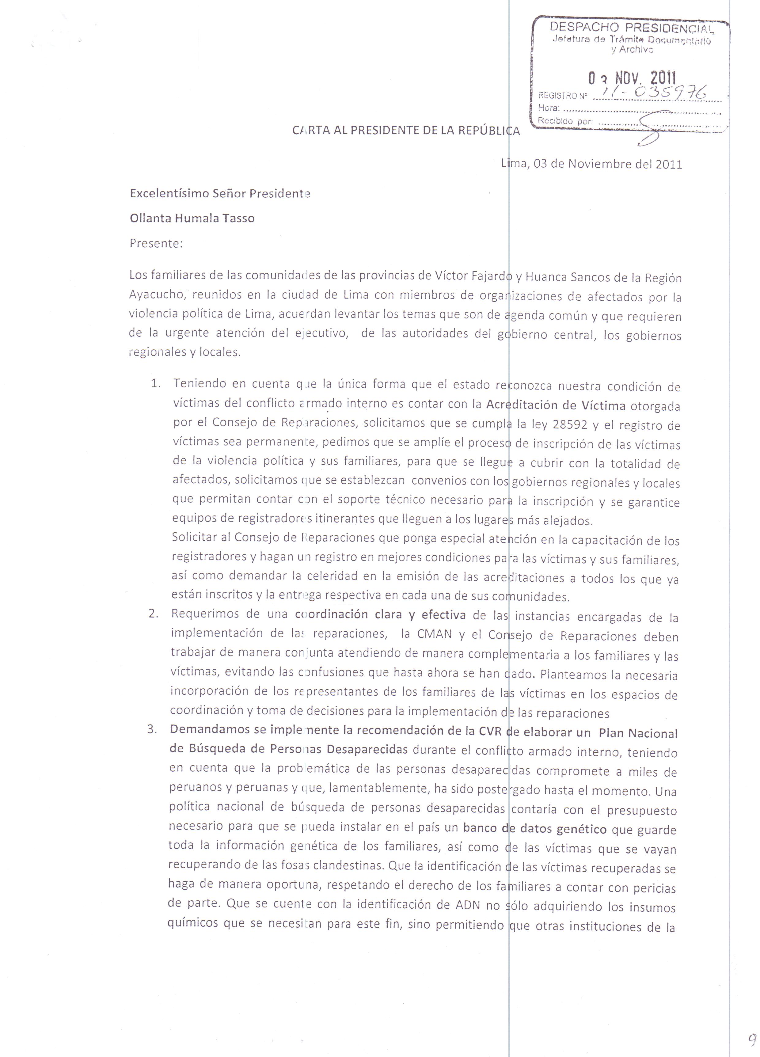 Luego del cambio de gobierno, de las expectativas creadas y el rechazo del regreso del fujimorismo, ha sido sin embargo confusa la posición del Estado frente a la guerra interna y preocupante que el entorno del gobierno del nuevo presidente Ollanta Humala haya dado señales negativas sobre la responsabilidad del Estado frente al desamparo y la represión contra los más pobres durante la época de violencia.